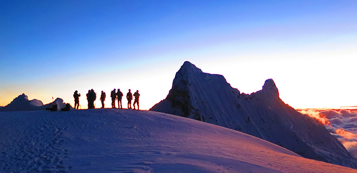 Nevado Pisco: Ein sehr attraktiver Berg und zur Akklimatisierung sehr gut geeignet, für Kletterer, die noch höher hinaus wollen. Der Nevado Pisco ist auch für Hochtourenneulinge bestens geeignet. Auf dem Gipfel in einer Höhe von 5752 m haben sie einen herrlichen Ausblick auf die Cordillera Blanca mit den vier Gipfeln des Huandoy, Alpamayo, Artesonraju, Cracraraju, Yanapaccha, Chopicalqui und noch viele andere. Ebenso können Sie den höchsten Berg in Peru bestaunen – den Huascaran Süd und Huascan Nord mit einer Höhe von 6768 m.